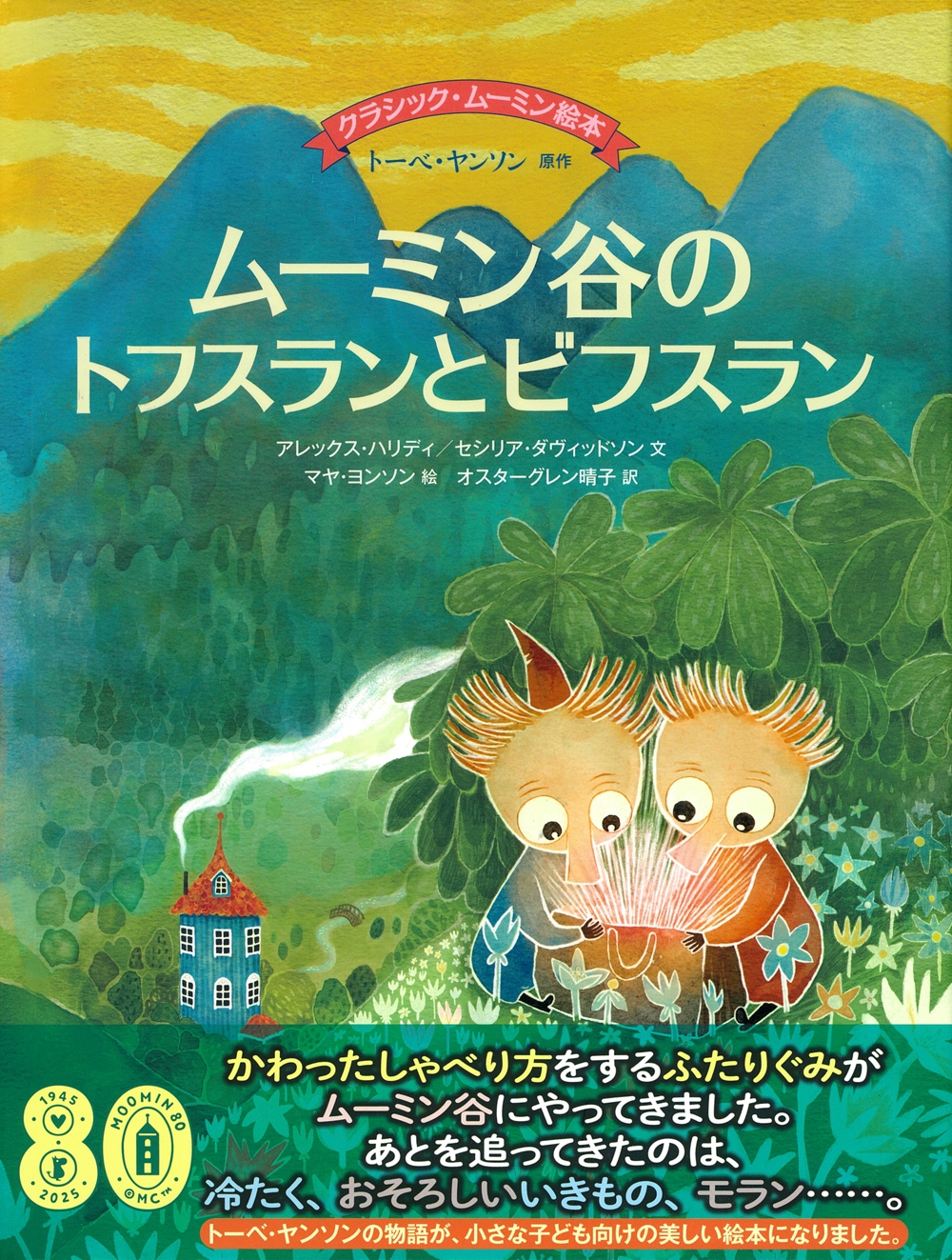 トーベ・ヤンソンの姪が、原作童話を、小さな子どもから楽しめるようにしたいと発案したシリーズの第5弾。『たのしいムーミン一家』から、トフスランとビフスランが登場するエピソードをピックアップした、楽しく美しい絵本です。