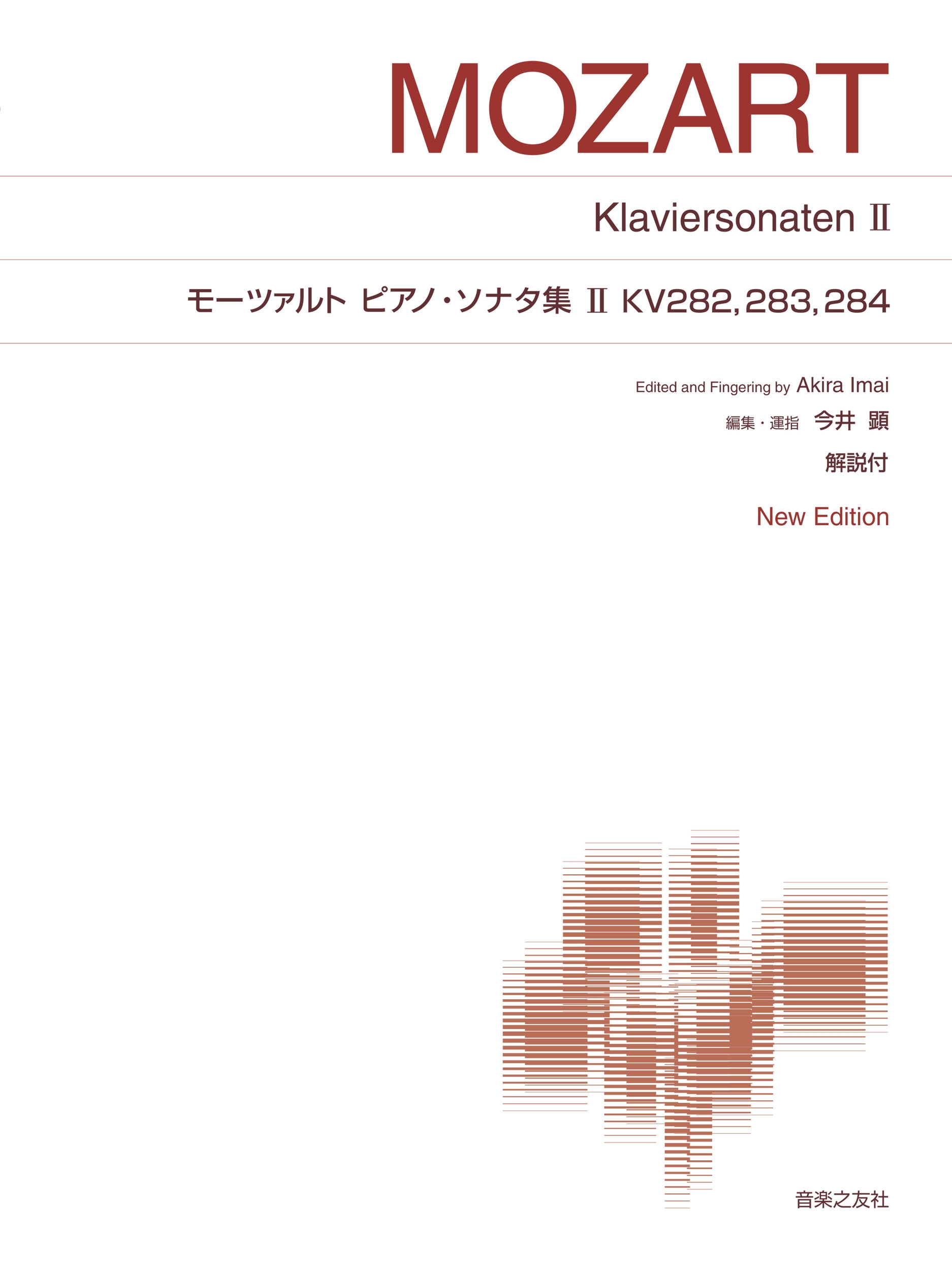 モーツァルト演奏の伝統を継承する編者が、演奏法と解釈を伝えるべく情熱を注いだ実用的なエディションである。本書は初版を重視して校訂をしているが、モーツァルト作品の美しさに迫るには、当時の記譜法、特にアーティキュレーションを書かれたとおりに演奏するだけでは不十分。楽譜に託されたイメージやニュアンスを感じ取り、生き生きと表情豊かに弾くには、古典派の演奏法に対する理解が不可欠だ。そこで本書は、編者推奨のアーティキュレーションを原典に由来する記譜と見分けられるようグレーで付加し、音楽の捉え方を感じられるように配慮した。また、スラーにつけられた「こぶ」はモーツァルトの音楽を語るように表現する手掛かりとなるだろう。さらに強弱や装飾音などの演奏法についても、前書きや脚注で詳細に解説を加えている。特に抑揚に関しての記述は、古典派の音楽を学ぶ人には必読である。