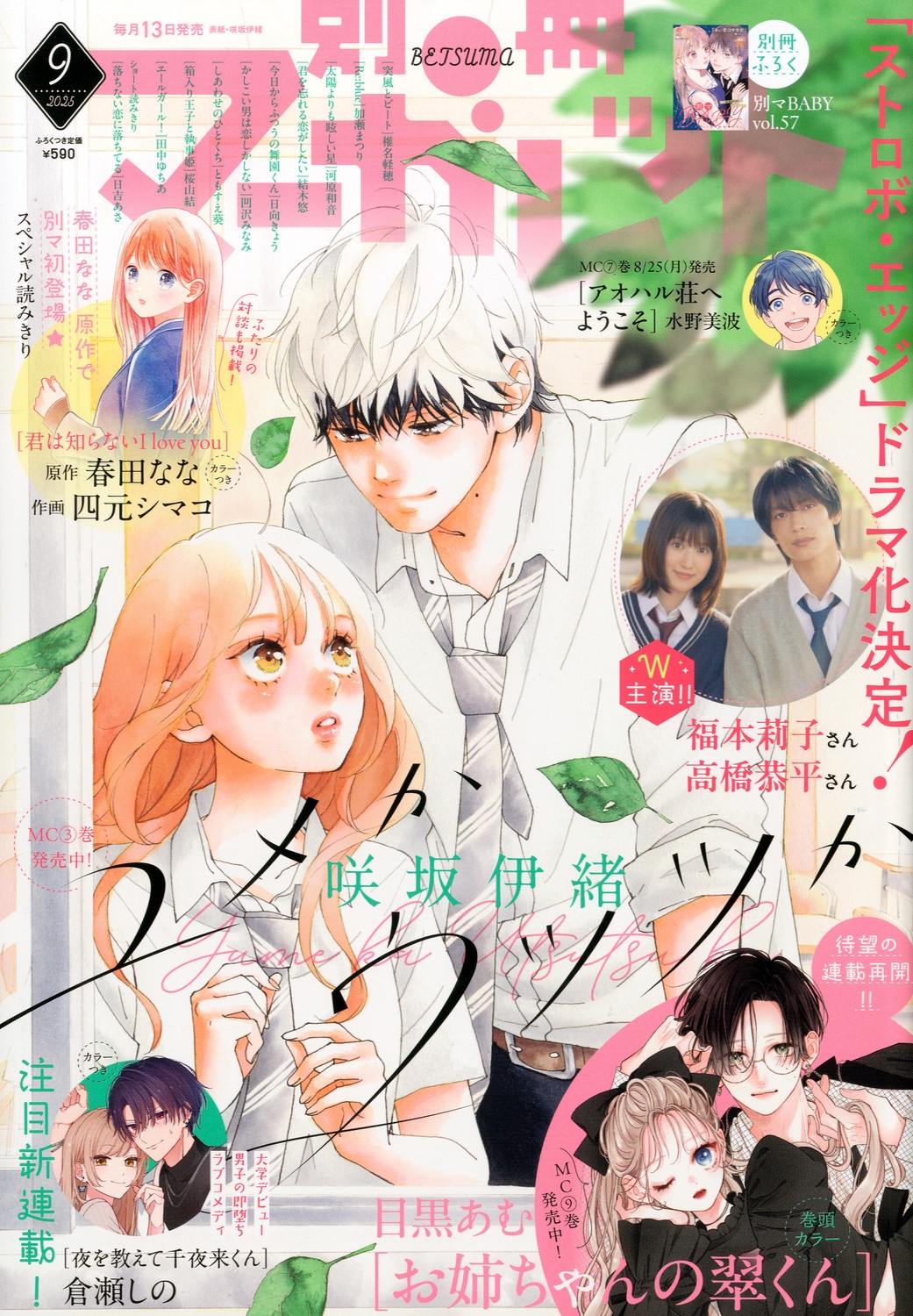 別冊付録 別マBABY Vol.57/巻頭カラー 『お姉ちゃんの翠くん』 目黒あむ/新連載&カラー 『夜を教えて千夜来くん』 倉瀬しの/カラー 『君は知らないI LOVE YOU』 原作:春田なな 作画:四元シマコ/カラー 『アオハル荘へようこそ』 水野美波