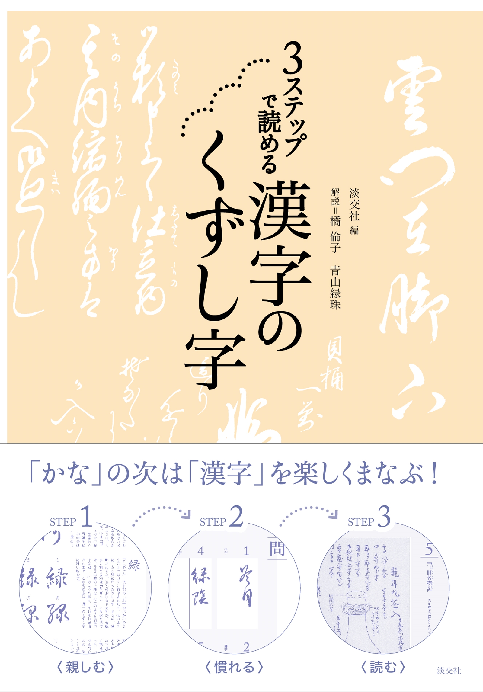 床の間の掛軸や、古文書などに書かれた「漢字のくずし字」を読めるようになりたい、と願う方は多いでしょう。仮名のくずし字が読めるようになった方にとって関門となるのも、「漢字」のくずし字です。仮名と異なり漢字は膨大な数があるため、その読解にはコツがいります。本書はそれをふまえた上で、3つのステップを経ながら、やさしく、確実に漢字のくずし字解読に親しむための書き込み式書籍です。ステップ1では部首に着目しながら、掛軸や古文書によく出る漢字のくずし字の形を覚え、ステップ2の例題で反復して定着、ステップ3では時代も書き手もさまざまな実践問題に挑み、応用力を養います。題材は一行物、名物記、蔵帳や、大河ドラマ「べらぼう」で注目される江戸時代の絵入り板本など多彩なラインナップ。併せて、理解を助ける「漢文」の基礎知識も収録します。なお、本書は2022年刊行の『3ステップで読める 仮名のくずし字』の続編です。