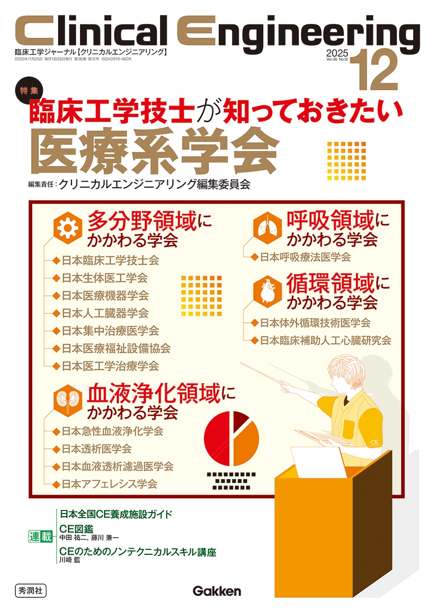 臨床工学技士に特に関わりの深い学会を紹介。各学会から「どのような対象者に向けて活動しているか」、「どのような資格を取得することができるか」など解説。実際の学会員から各学会のお勧めコメントも掲載!入会を検討する際の指標のひとつとなる特集!
