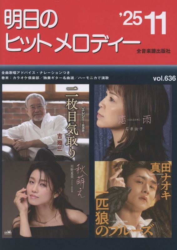 演歌・歌謡曲の最新曲をいち早く集めたカラオケファンのための最新曲集です。全曲に前・間・後奏、オブリガート、テンポ表示、リズム型、冒頭ナレーションと歌唱アドバイスまで入った完璧な楽譜になっています。巻末には楽譜が読めなくてもタブ譜でヒット曲が弾ける『独奏ギター名曲選』とハーモニカの独奏で演歌を楽しめる『ハーモニカで演歌』、分かりやすくて丁寧な指導で新曲が唄える『カラオケ倶楽部』といった色々なコーナーを収録。音楽マメ知識付きです。