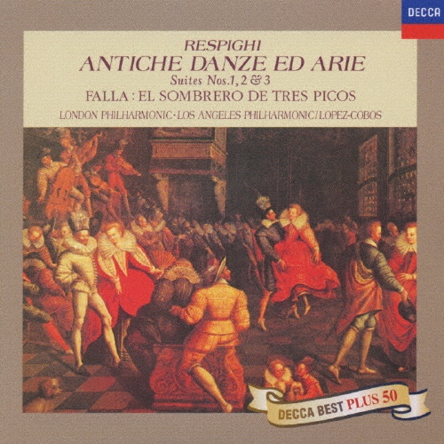 録音:1978年 ロンドン(*)、1979年 ロサンゼルスヘスス・ロペス=コボスは1940年に生まれたスペインを代表する指揮者のひとり。オーケストラ・コンサートやオペラの指揮で世界的な活躍を続けており、その巧みな語り口や作品の性格描写の見事さなどで定評があります。このアルバムには、レスピーギが16・17世紀のリュート作品を管弦楽用に編曲した『リュートのための古風な舞曲とアリア』全曲と、お国ものであるファリャのバレエ組曲『三角帽子』から6曲が収められています。