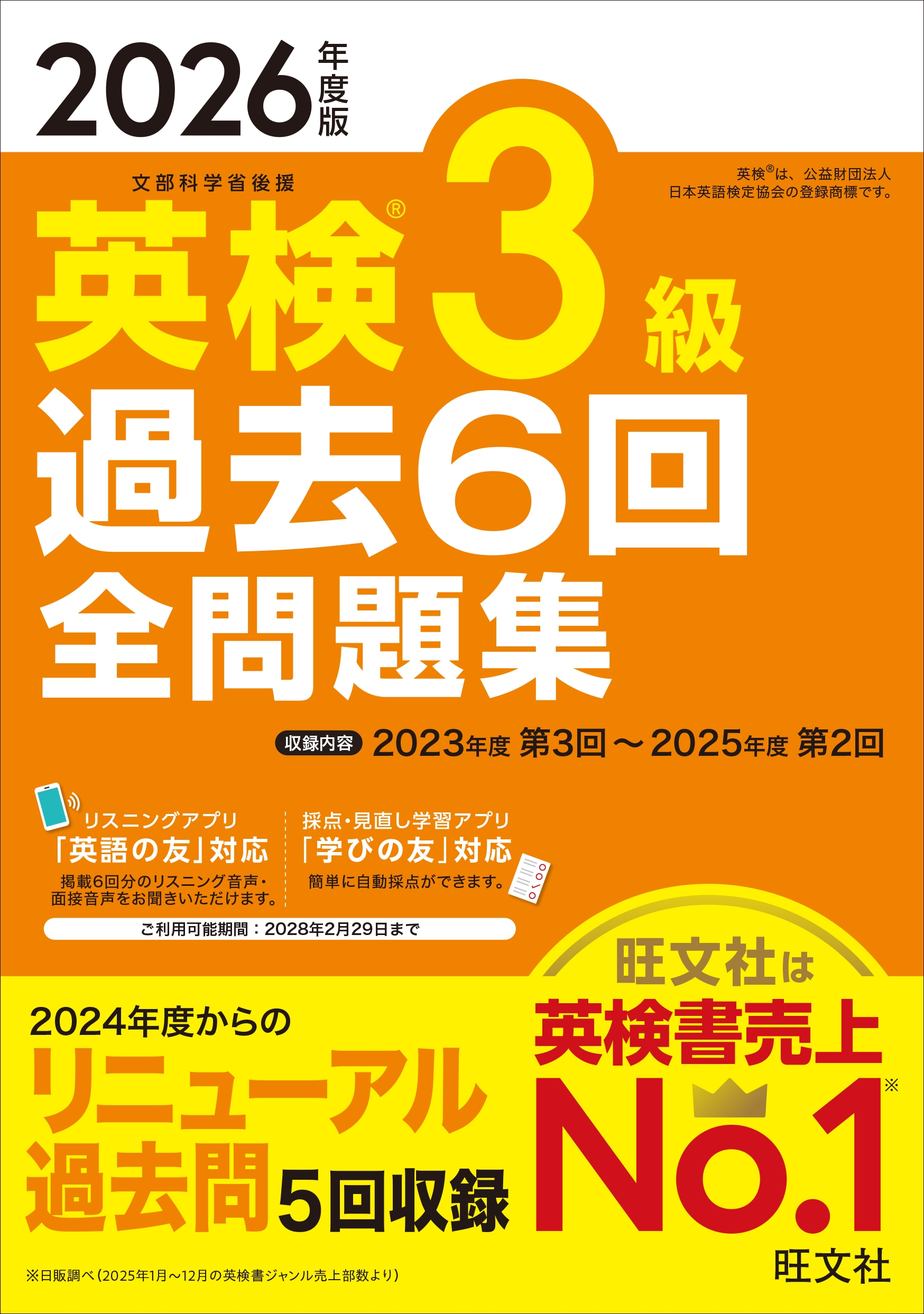 ※アプリ「英語の友」(https://eigonotomo.com/)・音声ダウンロードでの音声再生サービス、アプリ「学びの友」(https://manatomo.obunsha.co.jp/)での自動採点をご利用いただける期間は2026年2月20日-2028年2月29日です。なお、ご利用期間内にアプリやPCにダウンロードしていただいた音声・データは、期間終了後も引き続きお使いいただけます。