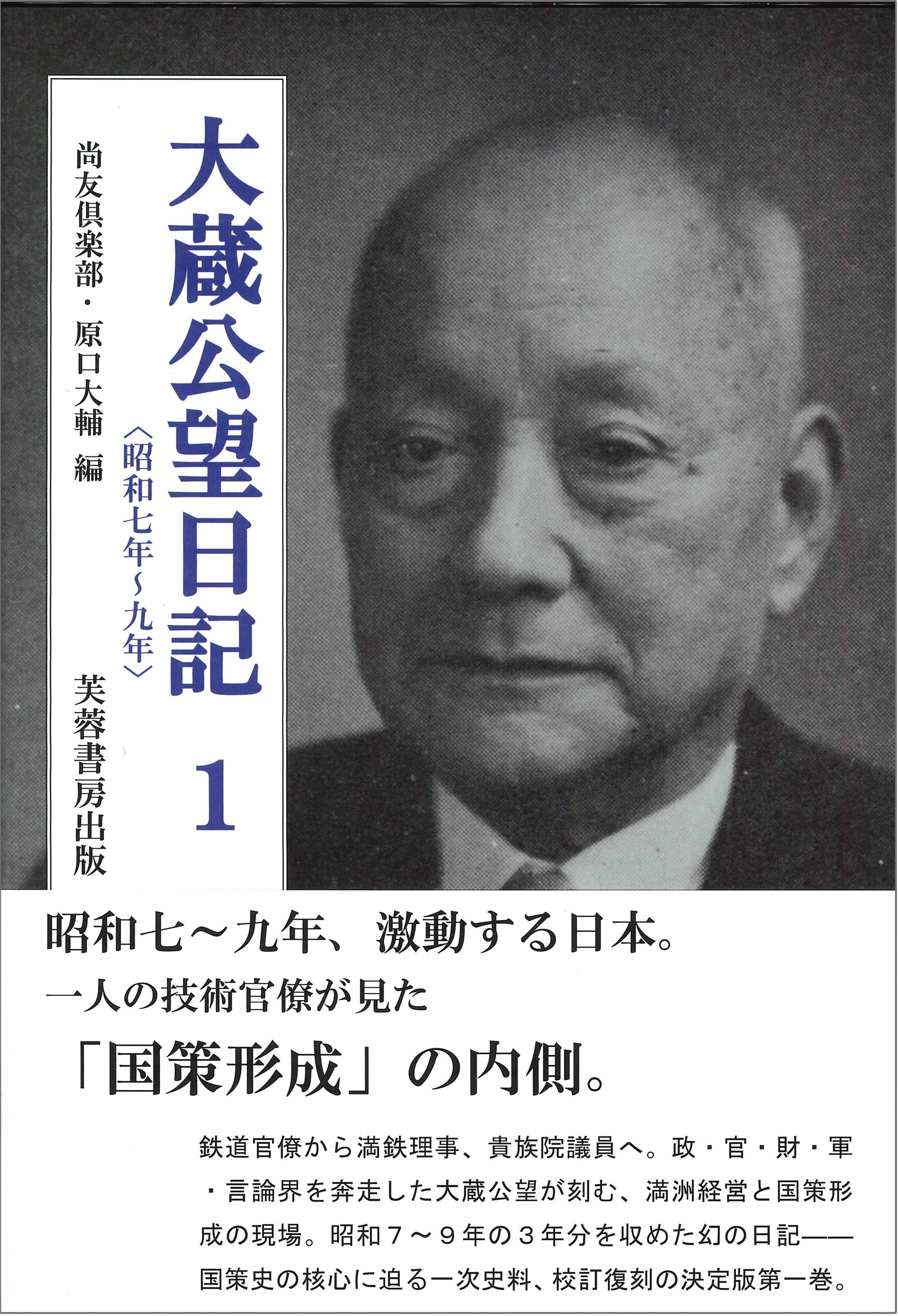 また、原口大輔氏による「解題 斎藤実内閣期の大蔵公望」を収録。斎藤実内閣期の政局と貴族院の動きを整理しつつ、日記の記述を手がかりに大蔵公望の政治的立場と行動を分析している。巻末の付録には、大蔵公望略年譜、大蔵家系図、索引、編者紹介を完備し、人物・組織・地名などを引きながら利用できる。巻頭の口絵は、大蔵公望の肖像、家族写真、大連の自邸、底本となった旧版日記など、関係写真を掲載し、人物像と時代の雰囲気を視覚的にも伝える。近代日本政治史・外交史・満州史研究のみならず、昭和戦前期の日本社会を知るうえで必携の一冊である。