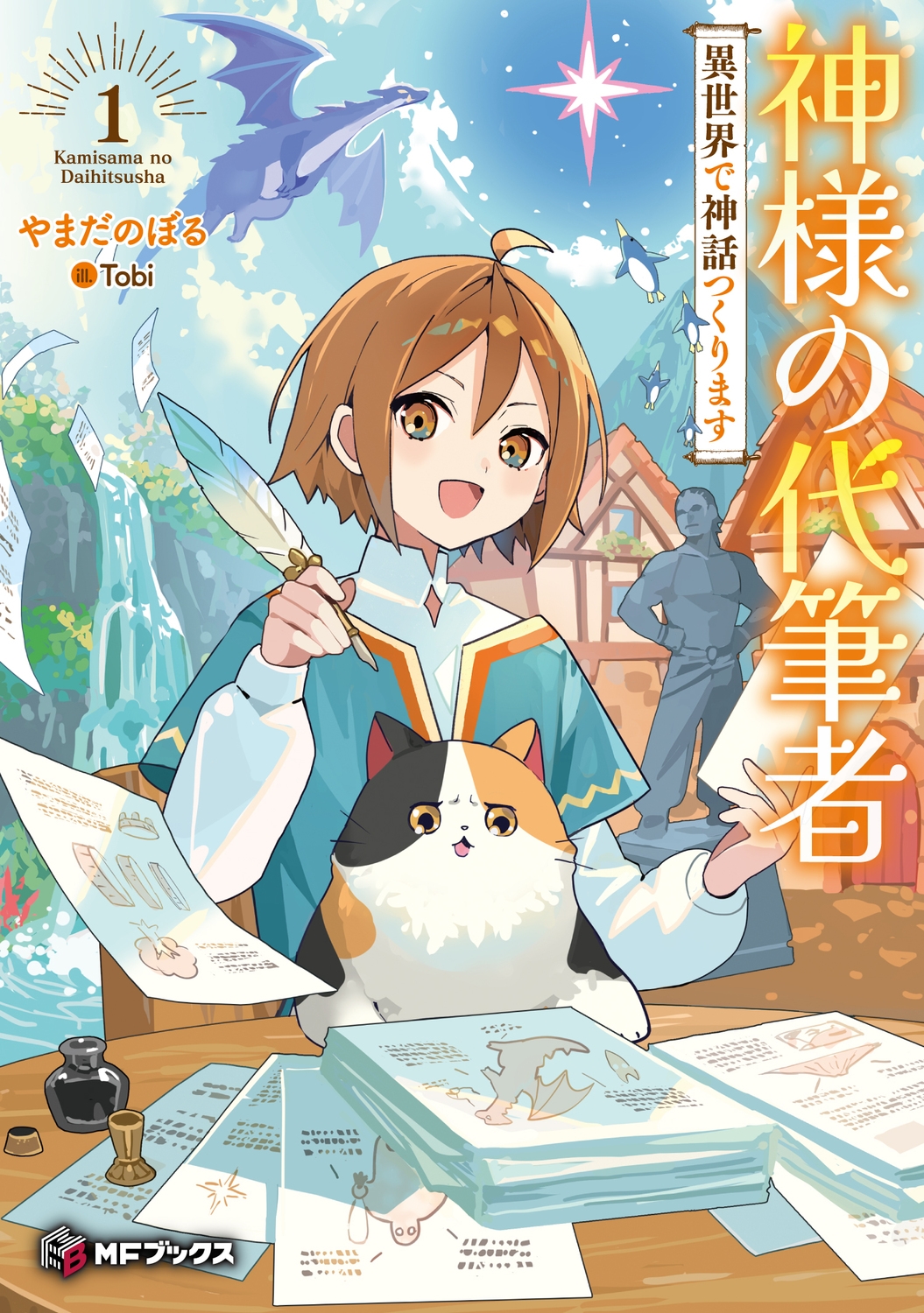 村の中で三毛猫に出会ったカタルが「西洋風ファンタジー世界に三毛猫って……こたつにみかんに三毛猫って、日本の冬の三点セットって感じするじゃん」と呟いていると、三毛猫は、いつの間にか黒猫に変わる。猫はカタルの言葉にふてくされながら、自分はこの世界をつくった神様だと言う。そして、「あの滝の名前、お前に決めさせてやるにゃ」と。根っからの設定厨であるカタルは――燃える。