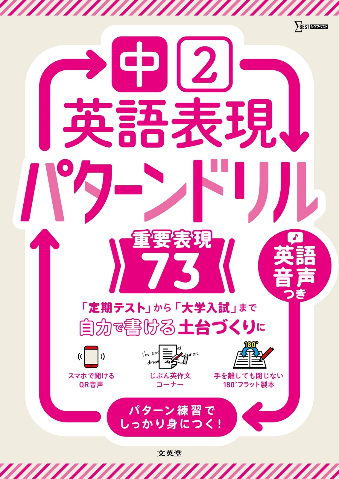 本書では、中学2年生で習う【重要表現】の「型」を、パターン練習でしっかり身につけることができます。自分で使える英語表現の型を増やすことで、定期テストはもちろん、将来的な大学入試に向けた英作文の土台づくりに繋がります。
