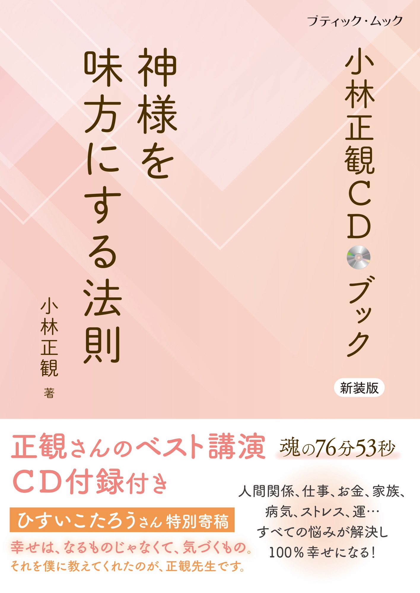 小林正観さんのベスト講演「無尽蔵の幸せを手にする法則」CD付きブックが新装版で待望の復刊!人間関係、仕事、お金、家族、病気、ストレス、運……すべての悩みが解決し、100%幸せになる!この本では、不安・困難・悲しみに突き当たったときでさえ自然と「ありがとう」と言える生き方、物事を喜んだり楽しんだりする考え方のコツをご紹介します。簡単なことばかりですが、実践すれば、きっと神様が味方になり、悩みや苦しみのない人生を送れるでしょう。(小林正観) CD:ベスト講演「無尽蔵の幸せを手にする法則」