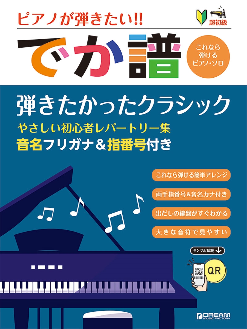 指番号も付いているので、運指が確認しながら弾けます。ピアノをはじめて間もない方で、まだ五線譜に慣れていない方でも、QRコードからのサンプル演奏を参考にして、音名を見ながらゆっくりと始めてみましょう!